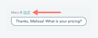 CONSEJO PROFESIONAL: Si los moderadores no están seguros del contexto de la pregunta de un asistente, pueden hacer clic en la marca de tiempo que aparece junto al mensaje del asistente y ser llevados a unos segundos del vídeo antes de su envío. De este modo, pueden volver a ver esa parte del vídeo y hacerse una mejor idea de lo que el asistente quiere saber.