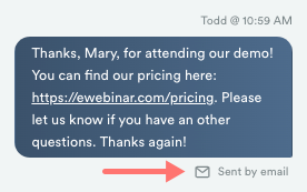 Cuando Melissa quiera responder a un asistente en particular, puede hacer clic en la conversación para abrirla. Desde allí, puede escribir y enviar su respuesta: