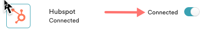 - A desconectar temporalmente la integración, haga clic en el conmutador junto a Hubspot para cambiarlo de Conectado a No conectado.