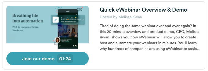El widget Card le permite promocionar su seminario web como parte de un contenido existente, como una entrada de blog o una página de destino.